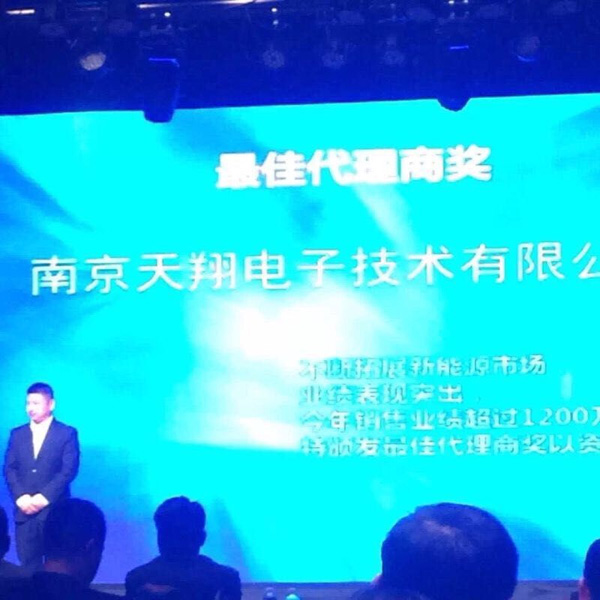南京天翔電子于2011年正式成為L(cháng)S代理商,立足于新能源行業(yè),為L(cháng)S產(chǎn)品在光伏、風(fēng)電等行業(yè)打開(kāi)中國市場(chǎng)大門(mén),僅用四年時(shí)間就實(shí)現年銷(xiāo)售額突破1200萬(wàn)美金,成為L(cháng)S產(chǎn)電第一大代理商。為此LS產(chǎn)電在今年的代理商大會(huì )上特授予南京天翔電子最佳代理商,并額外給予120克黃金嘉獎。