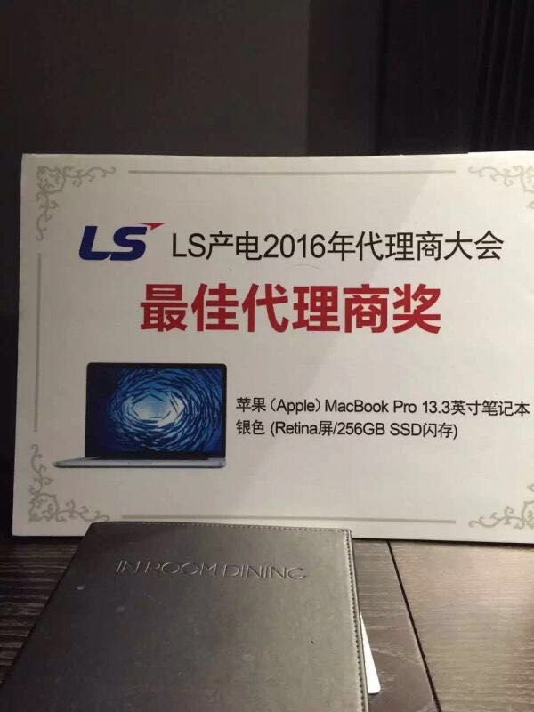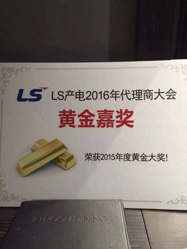 2015年12月17日,LS產(chǎn)電中國代理商大會(huì )在韓國濟州島順利召開(kāi)。南京天翔電子技術(shù)有限公司被授予年度最佳代理商和黃金嘉獎兩項大獎。